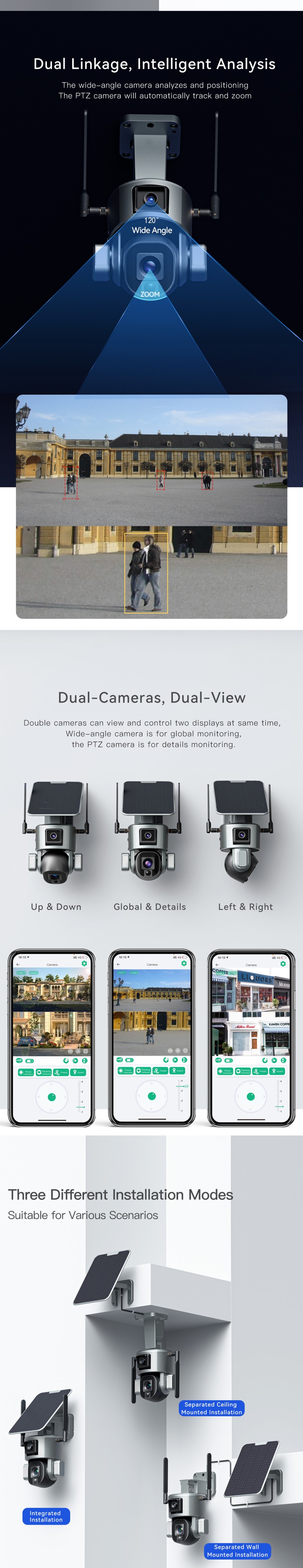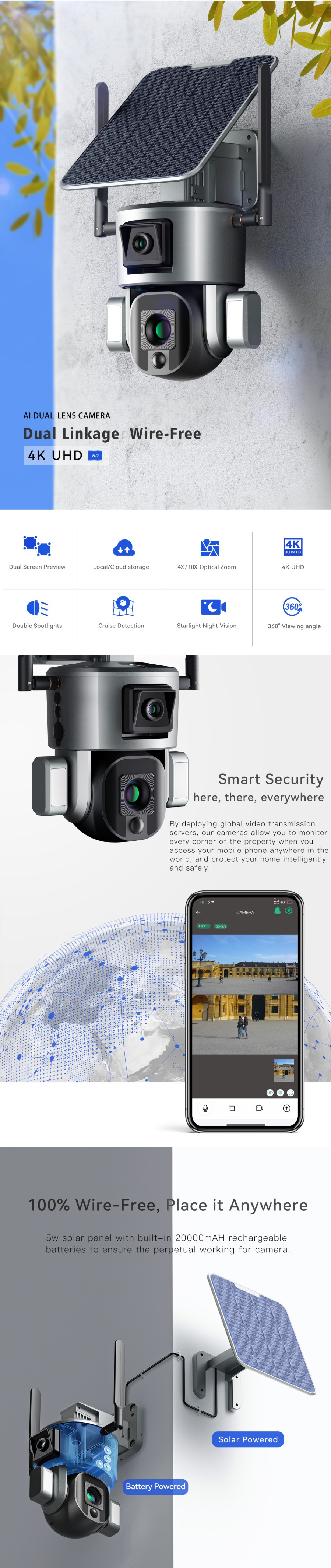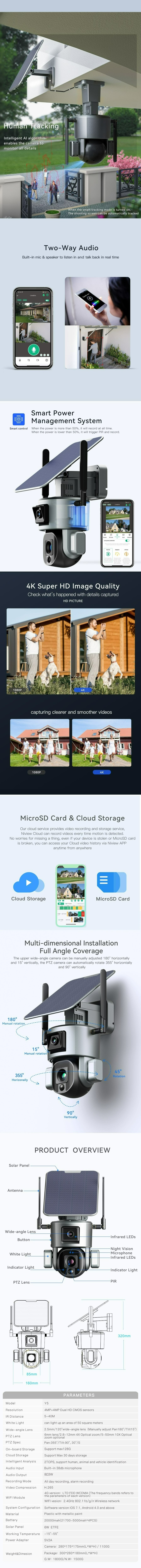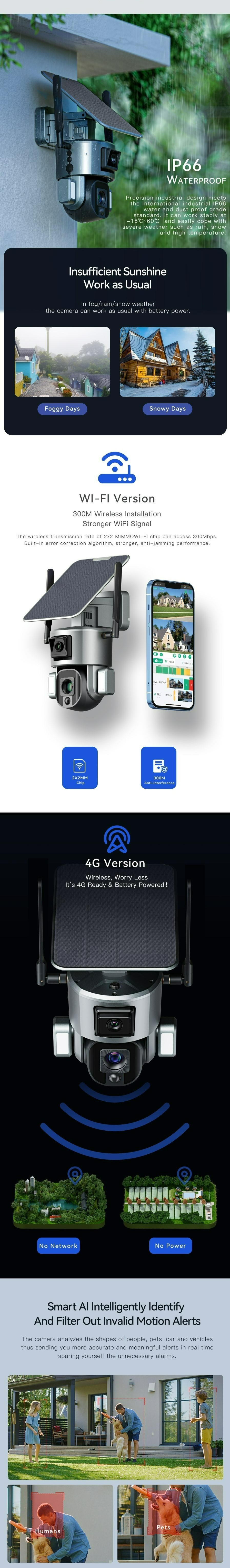 Outdoor Solar Camera 4G SIM / WIFI Wireless Security Detachable Solar Cam Battery CCTV Video Surveillance Smart Monitor